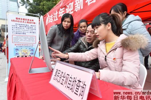 2月7日,福州市台江区纪检干部(前右一)在街头向低保户讲解惠民资金自助查询方法。春节将至,福建省福州市各级纪检部门针对惠民资金开展专项宣传和督查行动,对截留群众款项的违纪违法问题线索进行全面排查,确保群众在节前及时足额领取资金。