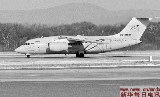 ▲2018年2月9日在俄罗斯符拉迪沃斯托克拍摄的一架萨拉托夫航空公司的安-148客机(资料图片)。