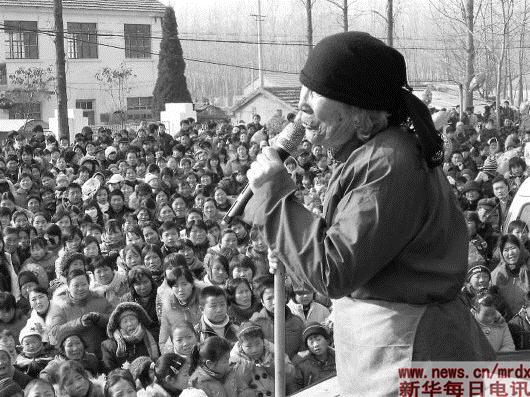 ▲2006年,在黄川村“村晚”现场,村里一位老人也兴奋地登台表演。