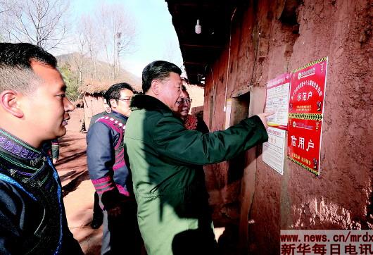 ▲这是2月11日上午,习近平在凉山彝族自治州昭觉县三岔河乡三河村详细观看扶贫联系卡。