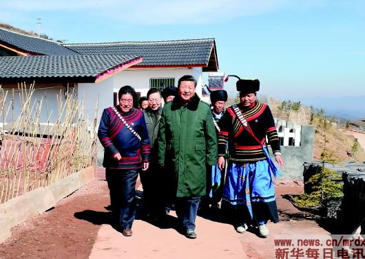 ▲这是2月11日上午,习近平在凉山彝族自治州昭觉县解放乡火普村了解易地扶贫搬迁和彝家新寨建设情况。