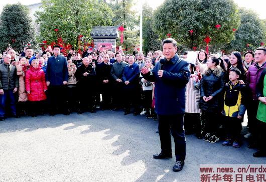 ▲这是2月12日上午,习近平在成都市郫都区战旗村考察时向群众拜年,祝愿全国各族人民新春快乐、阖家幸福。