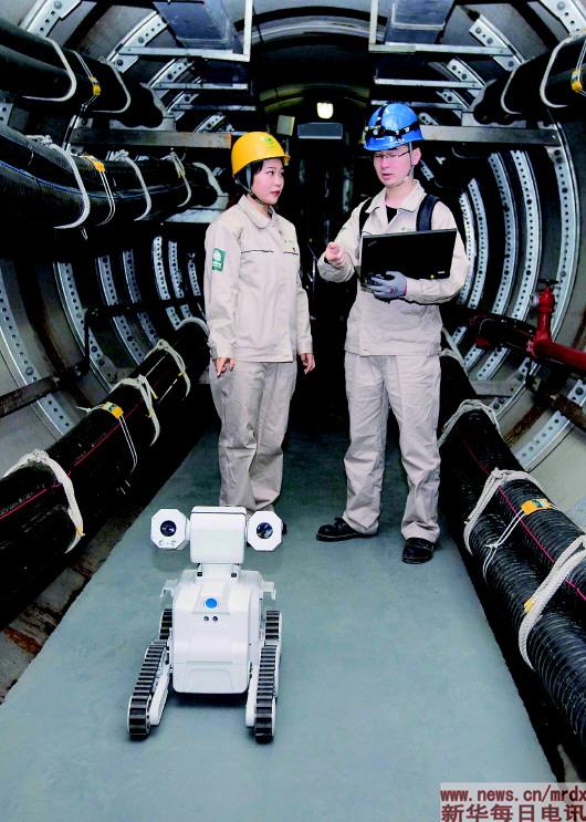 不久前,新一代电缆隧道巡检机器人已开始全面参与日常巡视工作。这个“小身材”机器人配备高清摄像头,可实现可见光与红外兼顾拍摄;装设高灵敏度传感器,有毒有害气体检测更智能;采用无线通讯,能实现远程控制和数据无线传输。“小身材”有着实现对隧道内电缆运行状态和环境的实时监测的“大本领”。