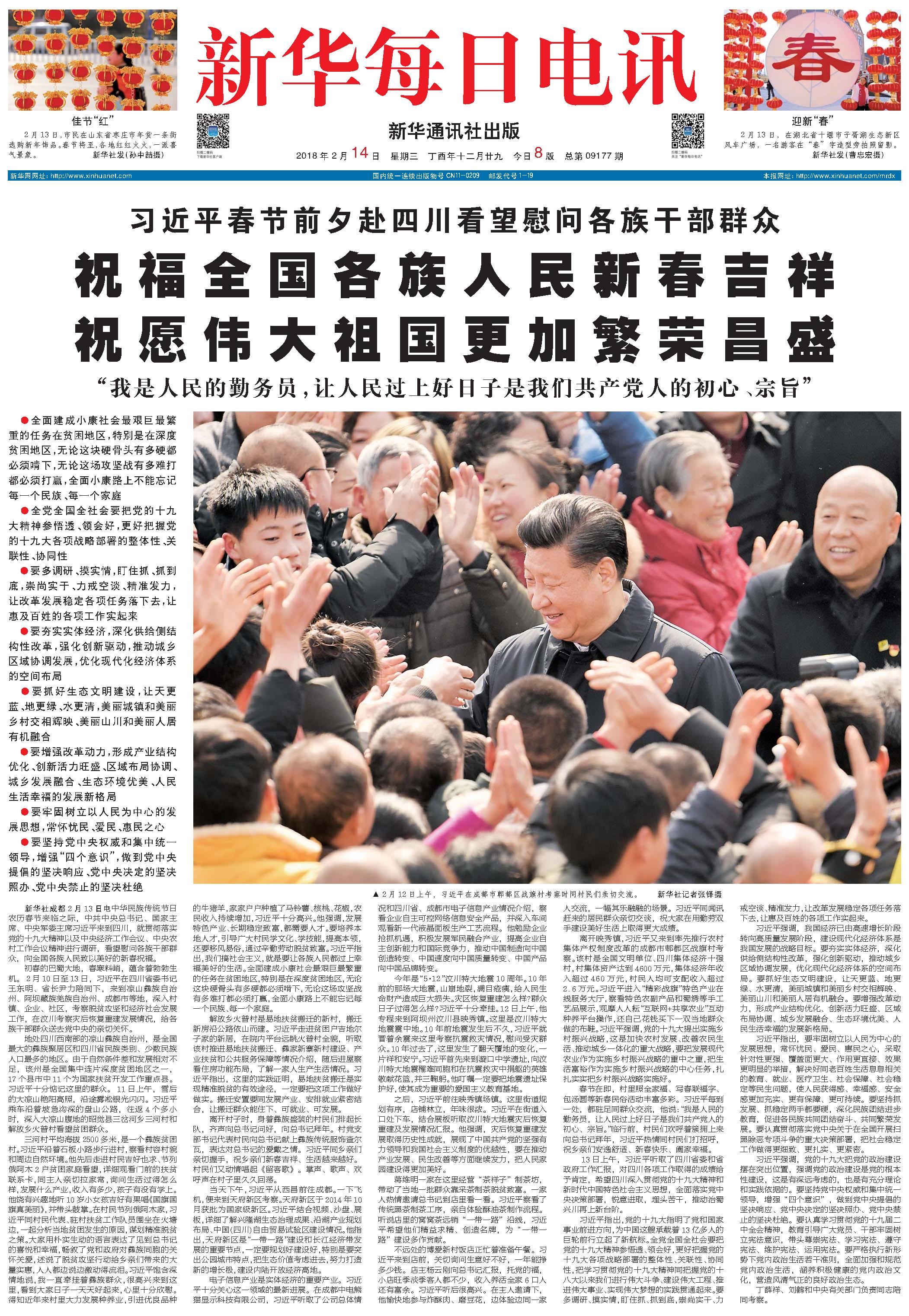 祝福全国各族人民新春吉祥 祝愿伟大祖国更加繁荣昌盛 祝福全国各族人民新春吉祥 祝愿伟大祖国更加繁荣昌盛 “我是人民的勤务员,让人民过上好日子是我们共产党人的初心、宗旨”
