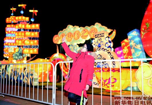 ▲2月20日,游客在衡水市园博园迎春灯会上自拍留念。春节期间,河北省衡水市园博园举办“2018年迎春灯会”,吸引大批市民和游客前来赏灯游园。新华社记者朱旭东摄 |