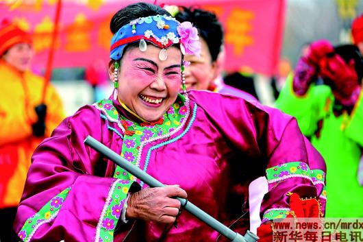 ▲2月19日,在山东省枣庄市东湖公园,民间艺人在进行民俗表演。春节期间,人们以多种方式过大年,一张张可爱的面庞构成了春节中最美好的画面。新华社发(孙中喆摄) |