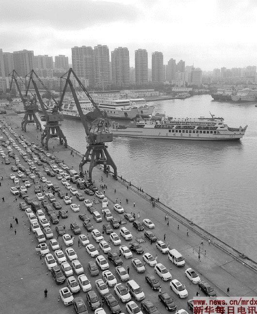 2月21日,海口秀英港滞留的车辆。新华社记者赵颖全摄
