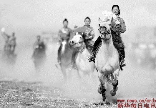 当日,在西藏自治区拉萨市林周县甘旦曲果镇江角村的一块农闲田地上,西藏民族传统马术队的队员们为乡亲们送上了精彩的马术表演。“马上射箭”“马上拾哈达”“叠罗汉”等12个大项、28个小项的精彩表演节目,让观众在藏历新年期间享受了一场视觉盛宴。