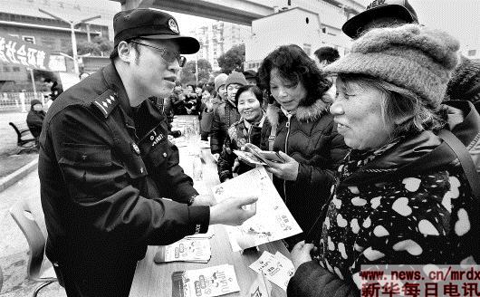 ▲2月25日,民警在闵行区江川路街道给群众讲解安全防范知识。