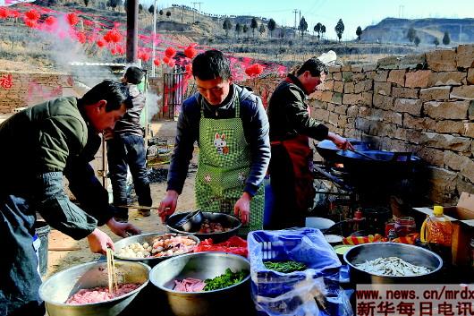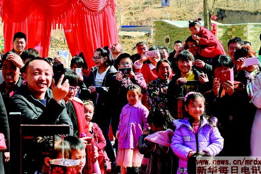 | 乡亲们在观看冯文忠的婚礼仪式。 |