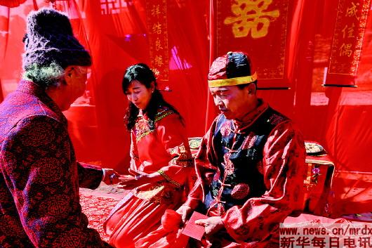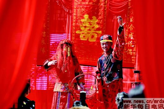 | 新郎冯文忠和新娘刘翠翠举行婚礼。