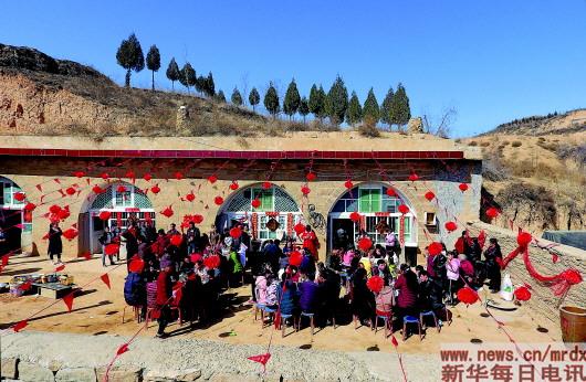 正月初八,奇奇里村年纪最大的光棍,43岁的冯文忠娶上了媳妇。 山西省永和县黄河乾坤湾对岸的山崖上,有一个叫奇奇里的小山村。多少年来,偏僻又贫穷的奇奇里村,好似“被世界遗忘”的角落。由于奇奇里村深藏大山交通不便,加上家里是“出了名”的贫困户,冯文忠的婚事一拖再拖,成了大龄“光棍”。冯文忠和村里的大多数人一样选择了外出打工,东走走、西转转,就是不愿意回到贫穷的村子。 新时代不会抛下任何一个贫穷角落,奇奇里村也不例外。2015年开始的精准扶贫,如一股暖风吹荡一池春水,迅速改变了山村面貌。 前些年,全村700多人中有323人属于贫困户。村里没有一条像样的路,没有路灯,连小卖部也没有。近两年来,在扶贫干部的带动下,奇奇里村大力发展认养农业、民宿休闲、乡村旅游等产业,开始走上脱贫致富之路。短短两年间,整个村子大变样,2017年底整村脱了贫。 依靠脱贫产业的发展,奇奇里村开始摆脱了“穷名”,村里的“光棍”们纷纷娶上了媳妇。 早年间在永和县城打零工的冯文忠平均一个月仅赚一千元左右,根本没有积蓄。2015年,冯文忠加入了村里组织的劳务工作队,在山沟里植树造林,队里不忙的时候还能出去打零工,冯文忠的钱袋子渐渐鼓了起来。 劳务工作队的活越来越多,2017年,冯文忠结束四处奔波的日子,回到奇奇里村把自家的窑洞改造成农家乐。冯文忠算了一笔账,随着村里游客的增多,农家乐估计一年能赚一万元左右,参加村里组织的劳务工作队一年可以挣近万元,枣树认领能为自己带来1500元的收入,这样的生活比出村打工好多了。 在外打工20多年,因为经济原因,冯文忠曾经有过多次失败的爱情经历。2017年,经人介绍,冯文忠认识了心仪的对象刘翠翠,两人特别聊得来,冯文忠暗下决心一定要将她娶回村。 在村里,一年四季不愁活干,每年能挣一两万元,看着冯文忠老实勤奋,手里也有了积蓄,未来有了指望的刘翠翠嫁到了奇奇里村。 村里的大龄“光棍”娶媳妇了,村里的老老少少一早就赶来帮忙。在婚礼仪式上,身着传统新郎装的冯文忠手牵新娘,射箭、跨火盆、拜天地、掀盖头……在父老乡亲的见证下,将心仪的对象娶回了家。
