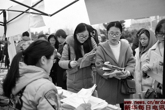 2月27日,求职者在“2018年河北省毕业生就业市场”上咨询就业信息。当日,为期两天的“2018年河北省毕业生就业市场”在石家庄市举行,共设招聘展位2500个,提供岗位5万余个。