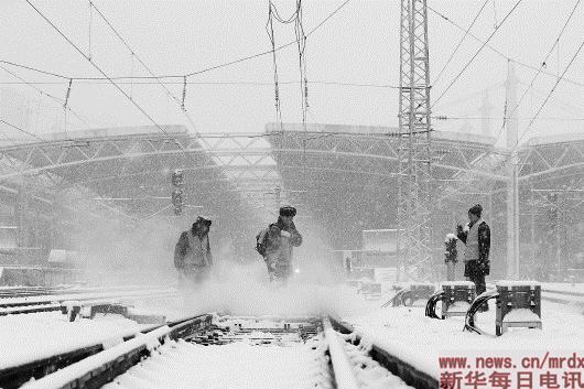 ▲2月28日,长春火车站工作人员进行除雪作业。