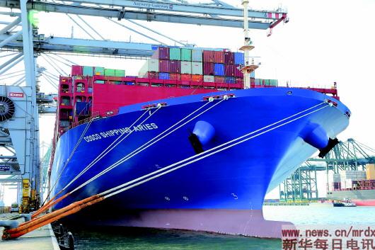 2月27日,“中远海运白羊座”集装箱船停靠在比利时安特卫普港。中国首制具有完全自主知识产权的2万标箱级集装箱船“中远海运白羊座”27日成功首航比利时安特卫普港。这是中远海运向远东至西北欧班轮航线投入的首艘该级别的超大集装箱船。