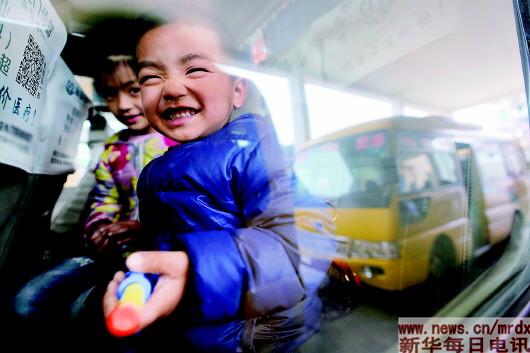 ▲小朋友在福建省永安市小陶镇乘坐村镇公交(1月26日摄)。截至2017年底,永安市基本形成了以县道为骨架,乡道为支线,村道为脉络的农村公路网络体系,为农业农村发展提供交通运输保障。