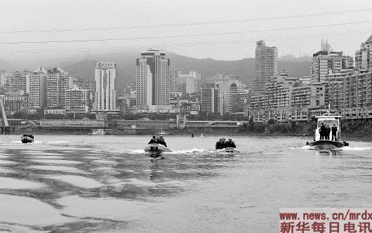 记者1日在湖北长江宜昌中华鲟保护区看到,包括渔政、公安、海事部门在内的近10艘执法船组成渔政特编船队在江心一字排开,渔政部门代表在进行宣誓并接受授旗后立即启动巡航执法行动。
