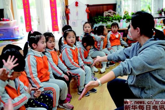 | 2月28日,中班的小朋友在上课。这个30人的班级里,有3名完全融入的听障儿童。