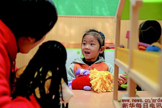 | 2月28日,同班的听障儿童与健全儿童一起游戏。 |