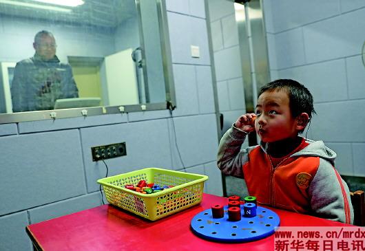 | 2月28日,幼儿园对一名听障儿童进行听力数据检测。 |