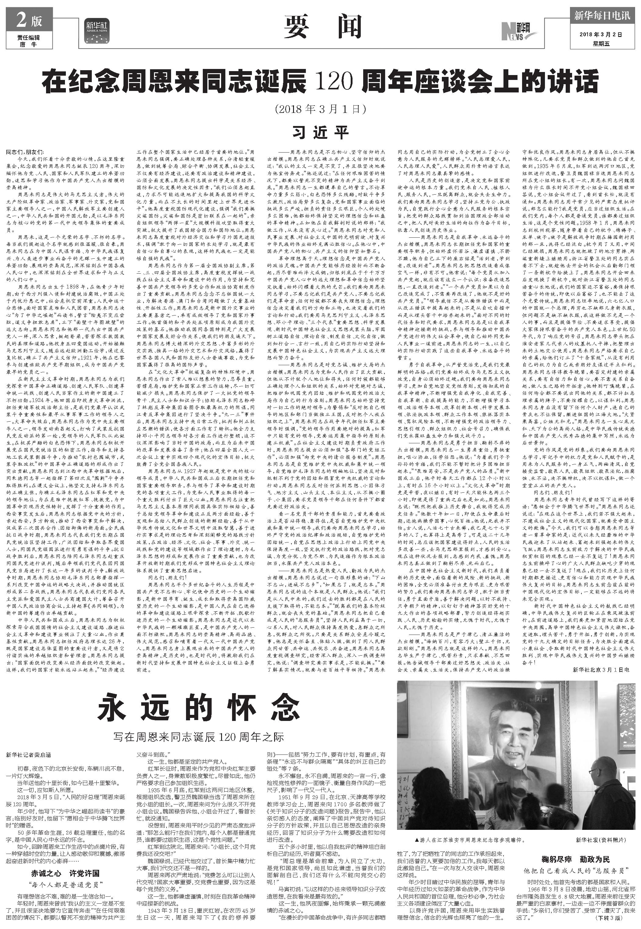 在纪念周恩来同志诞辰120周年座谈会上的讲话