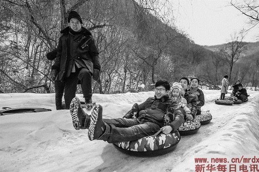 “这个雪道有坡度还有拐弯,速度很快,很刺激。”来景区滑雪的李海涛刚从滑雪圈里站起来,就迫不及待地往坡上走,准备再滑一趟。和他一起来的还有6岁的小孙子。李海涛告诉记者,春节到现在他已经来了3次,每次回去,孙子都说没滑够还要来。