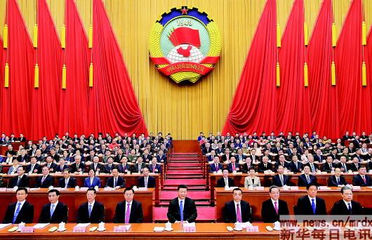 ▲3月3日,中国人民政治协商会议第十三届全国委员会第一次会议在北京人民大会堂开幕。这是习近平、李克强、张德江、俞正声、张高丽、栗战书、王沪宁、赵乐际、韩正在主席台就座。