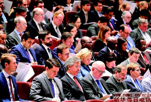3月3日,政协十三届一次会议在北京人民大会堂开幕。这是外国驻华使节旁听大会。