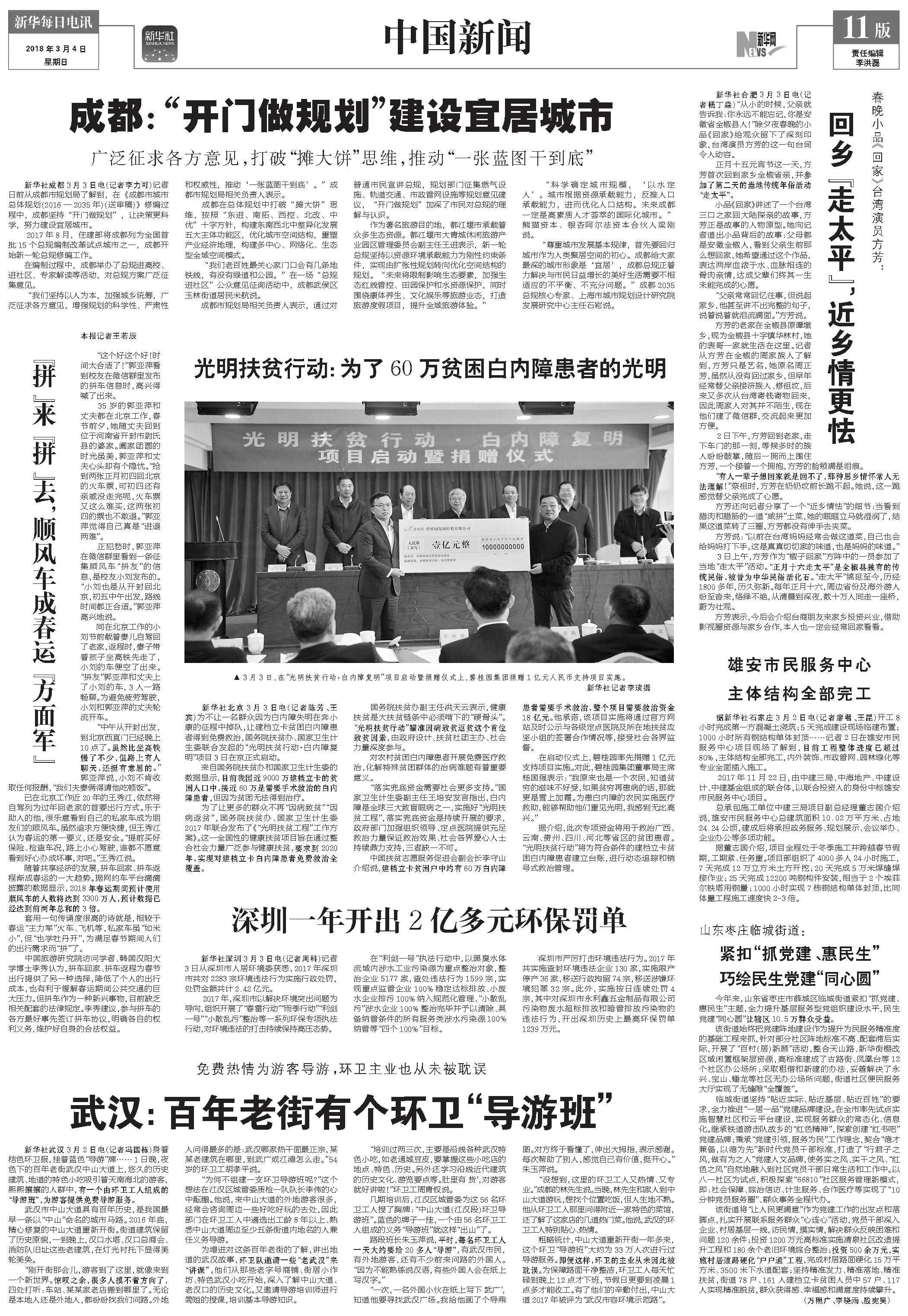 成都:“开门做规划”建设宜居城市 (2018年03月04日) |
