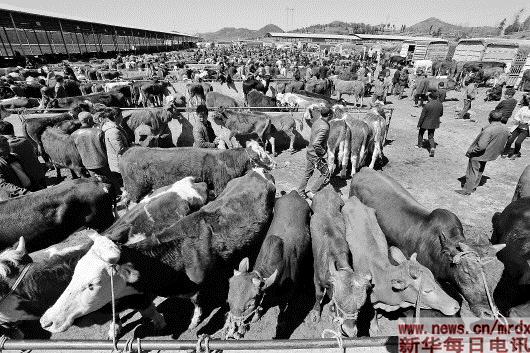 随着春耕农忙季节到来,贵州省威宁县小海镇以及周边县市的农户来到当地牲畜交易市场选购耕牛,为春耕生产做准备。