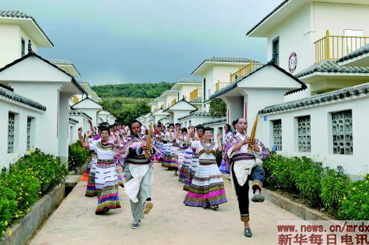 2017年10月,云南寻甸县塘子街道山后村33户114名建档立卡贫困苗族群众,从居住环境恶劣的大山中易地扶贫搬迁到小海新村。新华社资料照片 |