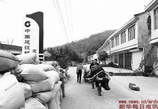 | 在建设银行定点扶贫的三柳村,村委会统一组织收稻谷。 |