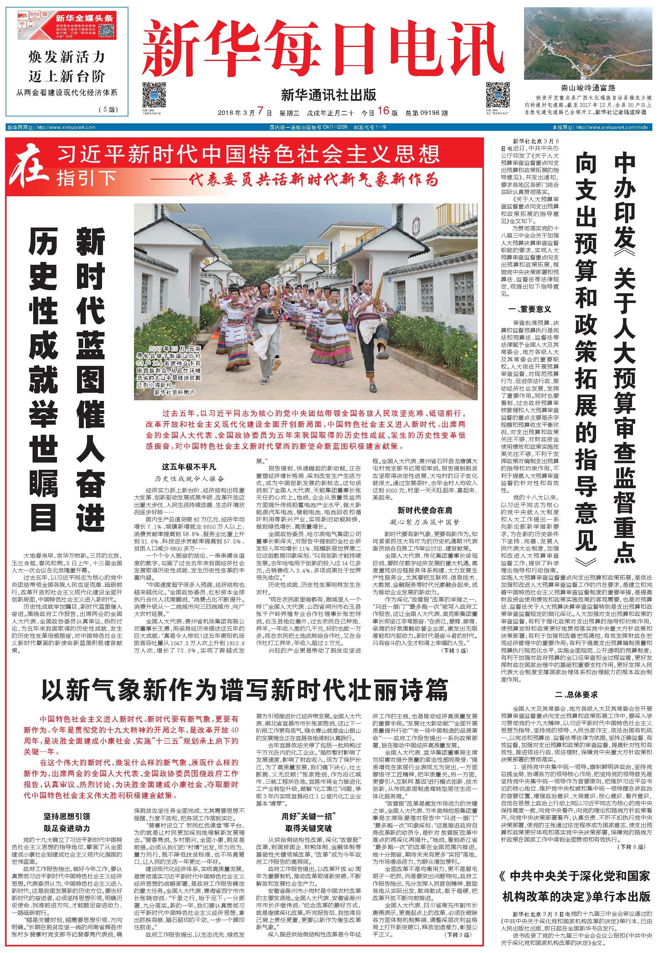 中办印发《关于人大预算审查监督重点向支出预算和政策拓展的指导意见》