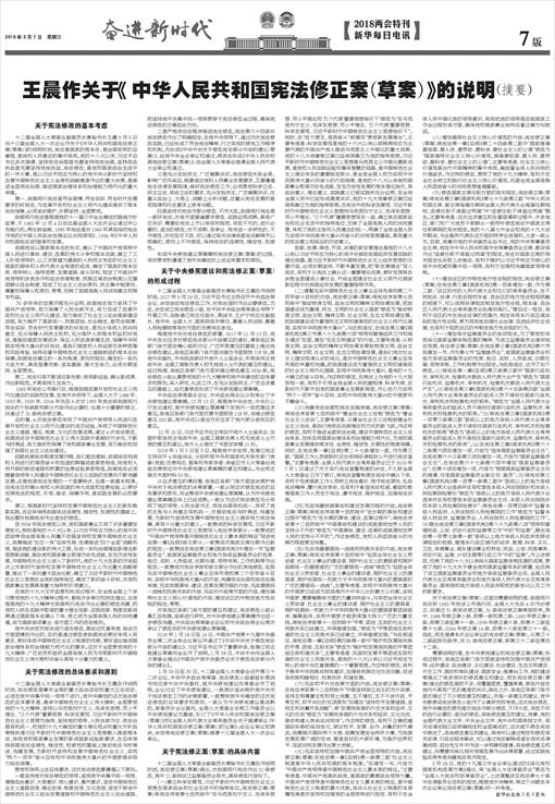 王晨作关于《中华人民共和国宪法修正案(草案)》的说明(摘要)