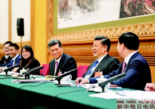 ▲3月7日,中共中央总书记、国家主席、中央军委主席习近平参加十三届全国人大一次会议广东代表团的审议。新华社记者燕雁摄