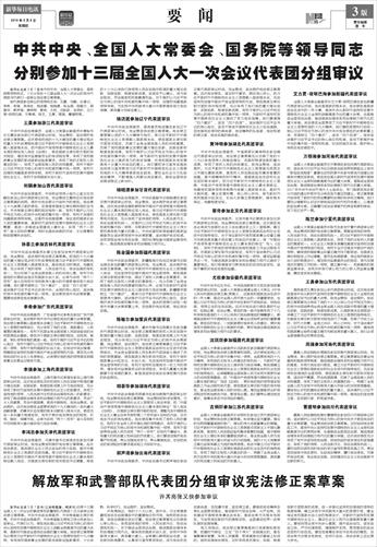 | 中共中央、全国人大常委会、国务院等领导同志分别参加十三届全国人大一次会议代表团分组审议