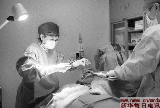 魏海燕在为患者动手术(3月6日摄)。新华社记者翁忻旸摄 |