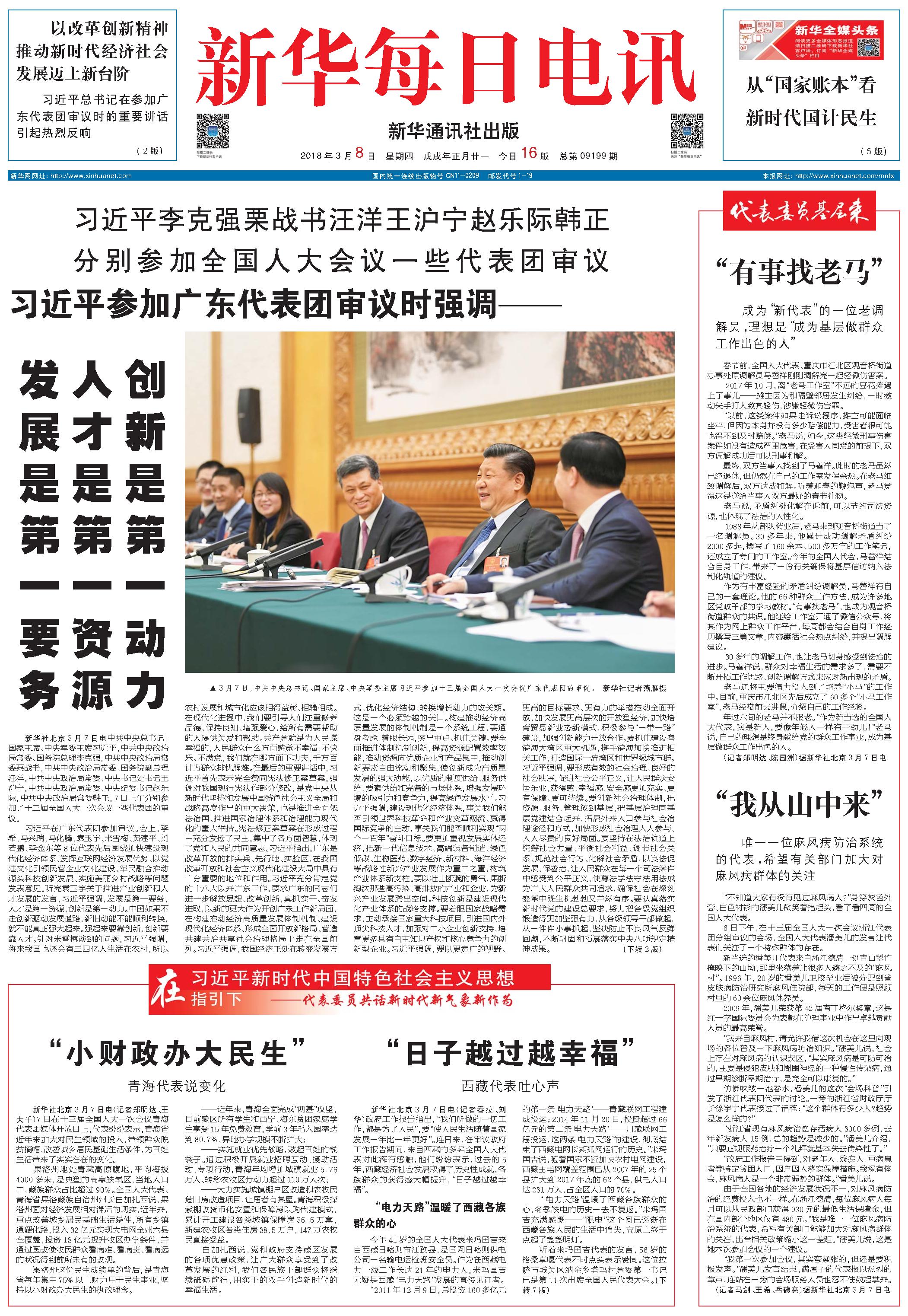习近平参加广东代表团审议时强调——发展是第一要务 人才是第一资源 创新是第一动力