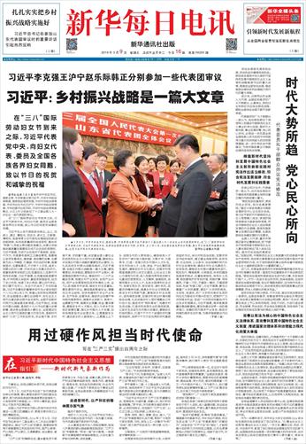 | ( 2018-03-09 ) 稿件来源: 新华每日电讯头版新闻 |