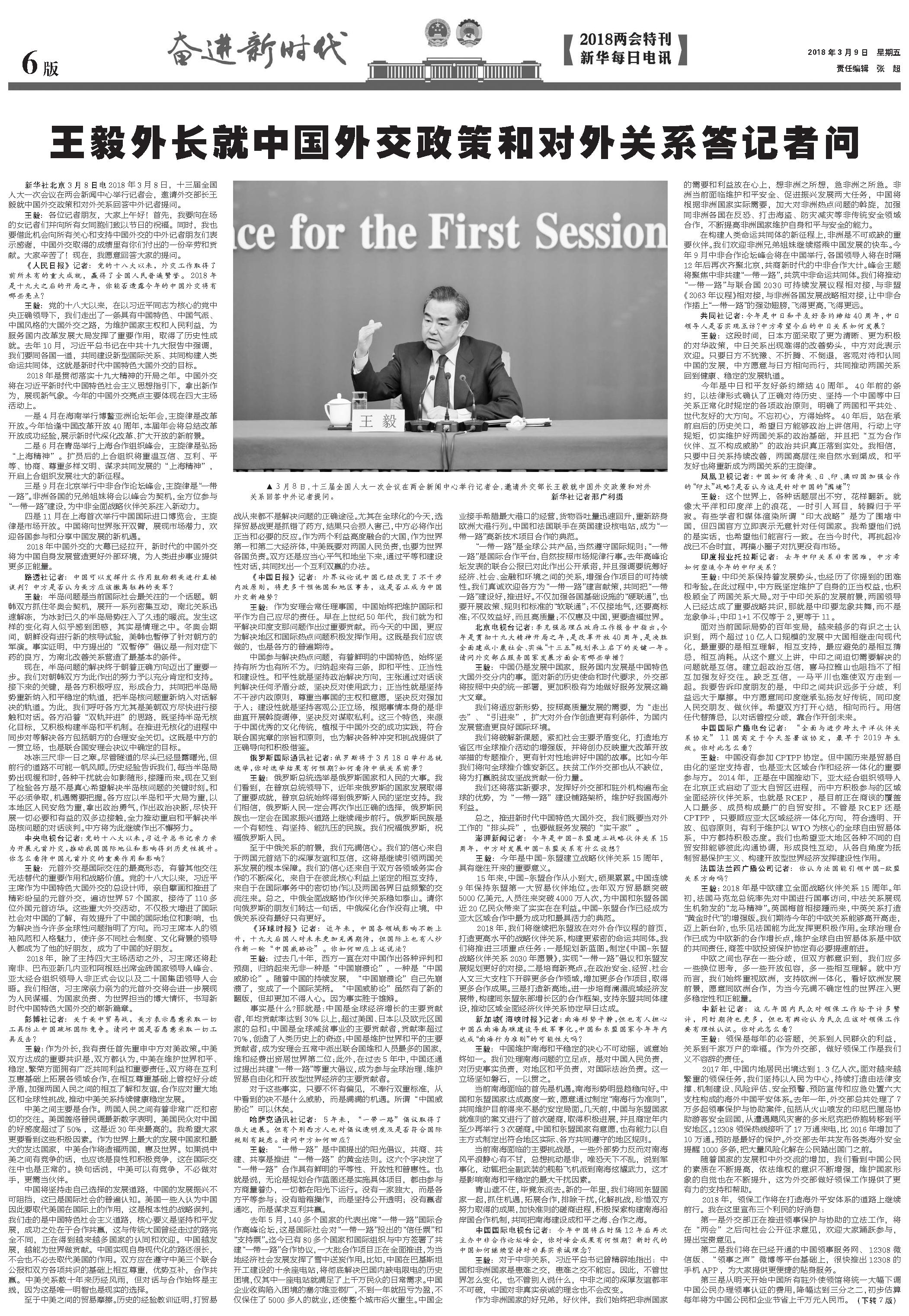 王毅外长就中国外交政策和对外关系答记者问