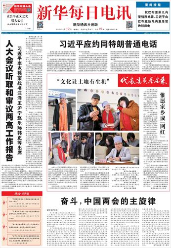 | ( 2018-03-10 ) 稿件来源:新华每日电讯 头版新闻 |