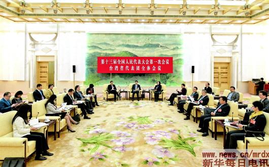 ▲3月9日,十三届全国人大一次会议台湾代表团全体会议向媒体开放。新华社记者刘金海摄 |