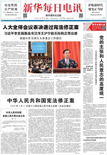 | ( 2018-03-12 ) 稿件来源: 新华每日电讯头版新闻 |