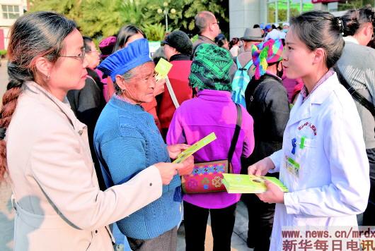 ▲3月10日,医务人员在给凉山州群众发放防癌抗癌科普手册。当日,四川省肿瘤医院6名肿瘤专家来到位于西昌的凉山彝族自治州第一人民医院开展主题为“送医到凉山”的义诊活动,为当地群众免费提供医疗咨询、肿瘤筛查、防癌抗癌知识普及等卫生服务。