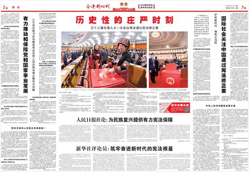 人民日报社论:为民族复兴提供有力宪法保障