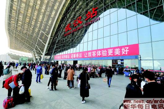 ▲3月12日是2018年春运的最后一天,旅客在武汉火车站准备进站。