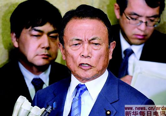 3月12日,在日本东京,日本财务大臣麻生太郎(中)召开记者会,承认“地价门”相关文件内容被篡改。