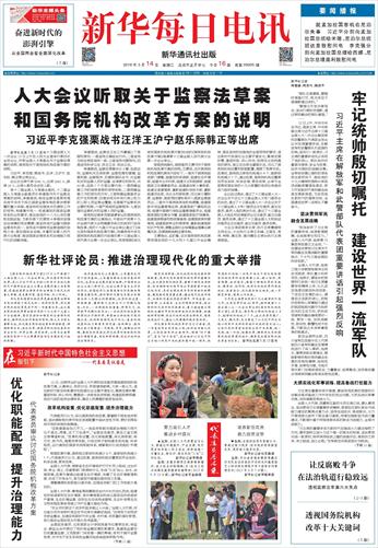 | ( 2018-03-14 ) 稿件来源: 新华每日电讯头版新闻 |