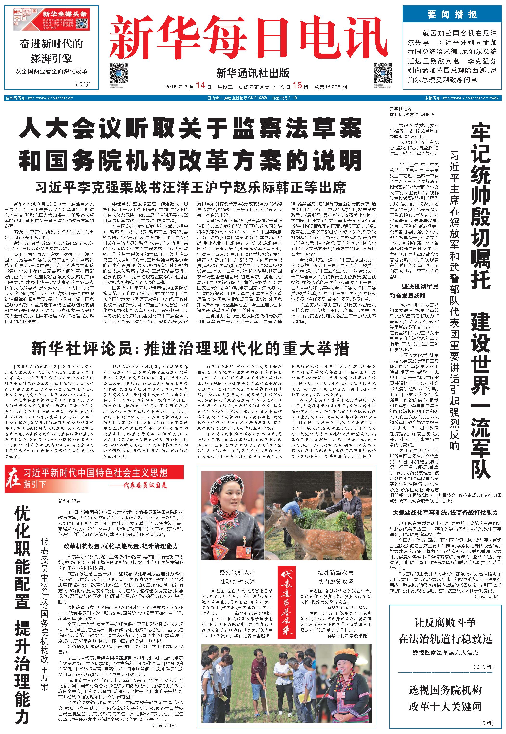 人大会议听取关于监察法草案和国务院机构改革方案的说明