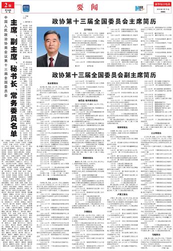 2013-2018年 十二届全国政协副主席兼秘书长、党组成员、机关党组书记(2015.02)